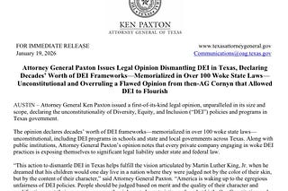 AG Ken Paxton Issues Landmark Legal Opinion on DEI in Texas