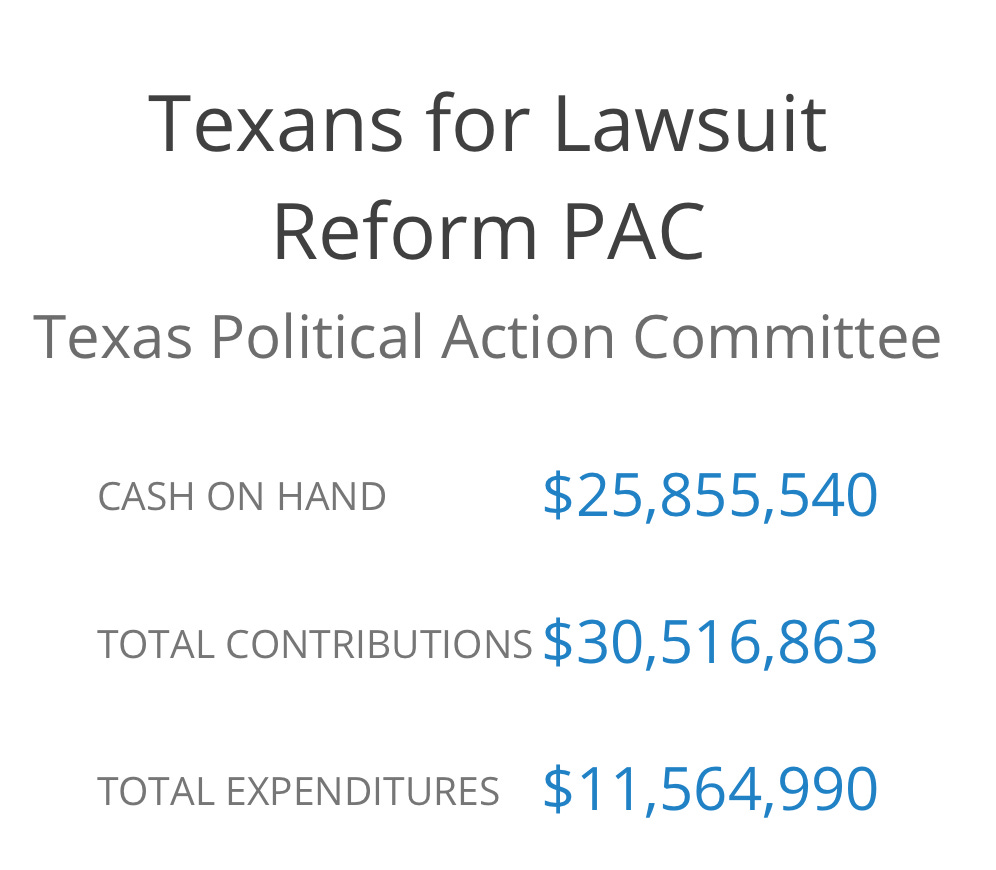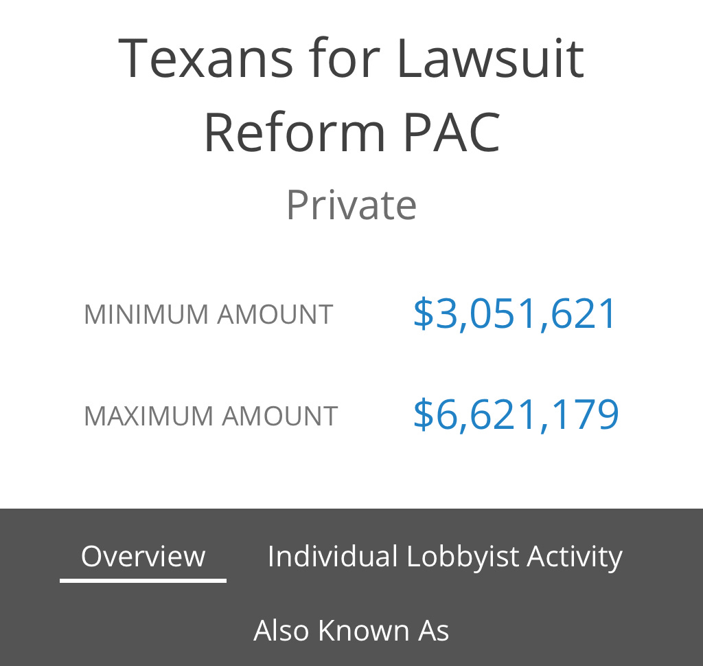 Texans for Lawsuit Reform is arguably the most influential special interest group representing these parasitic lawyers pushing these kinds of agendas.