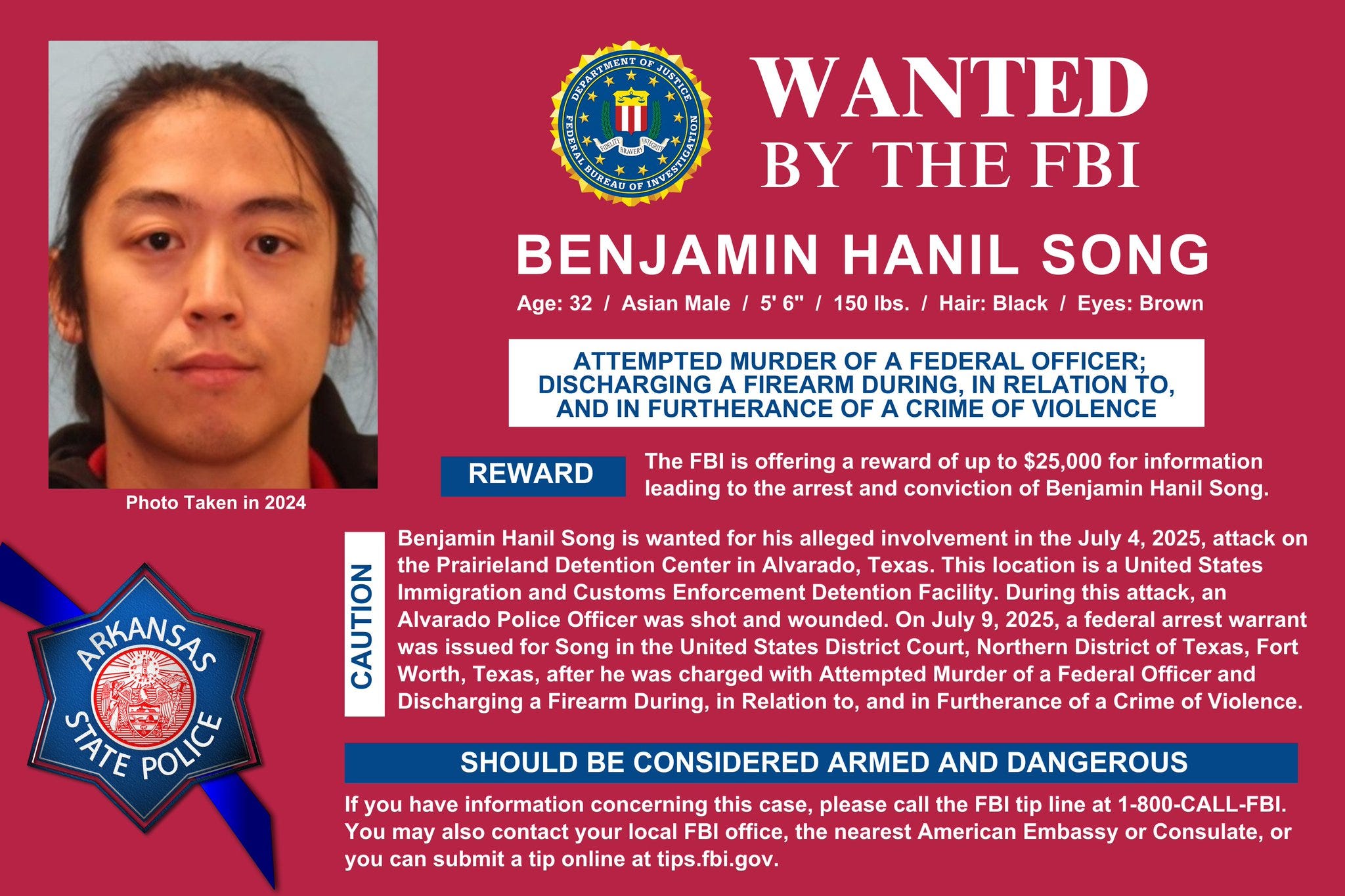 Benjamin Hanil Song, who was recently captured by the FBI after allegedly staging an attack on an Alvarado ICE facility, worked for his father’s Dallas law firm as recently as two years ago.