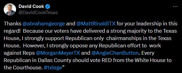 Do you think if you spoke to a random Republican voter that they would know who Dade Phelan was? Do you think this normal Republican voter would feel more strongly about a politician committed to deporting illegals and securing our elections or about bullet point number five “limiting the speaker to two terms to reduce their power over individual members?”