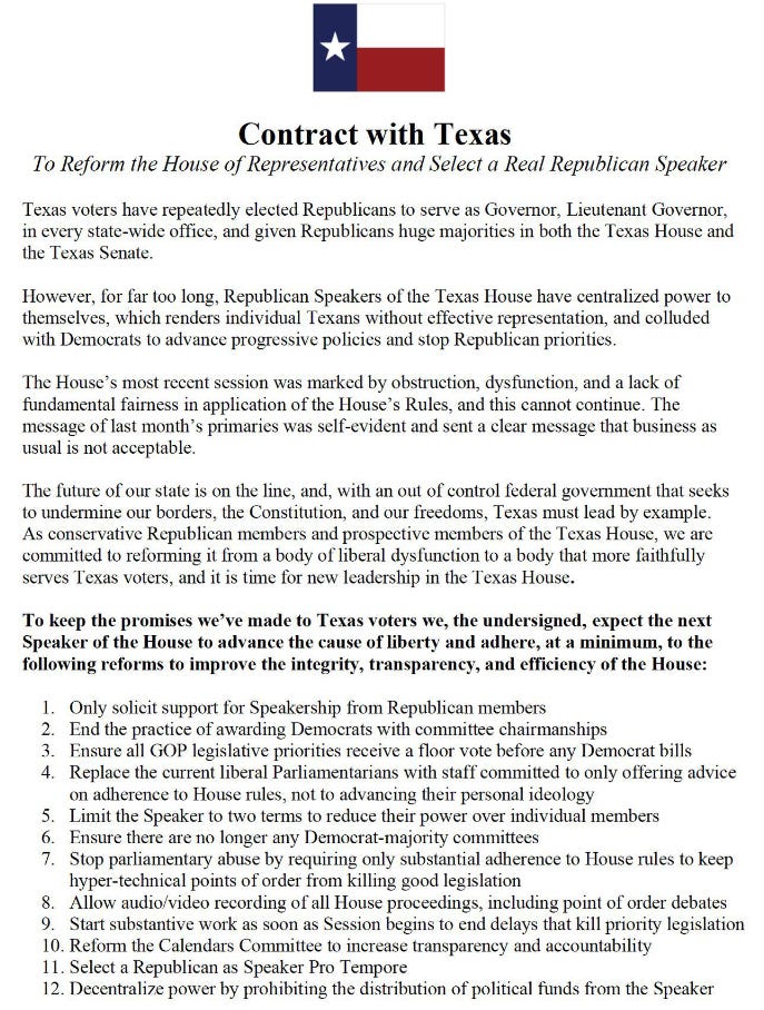 The “Contract with Texas” that the resolution committee is purity spiraling over: