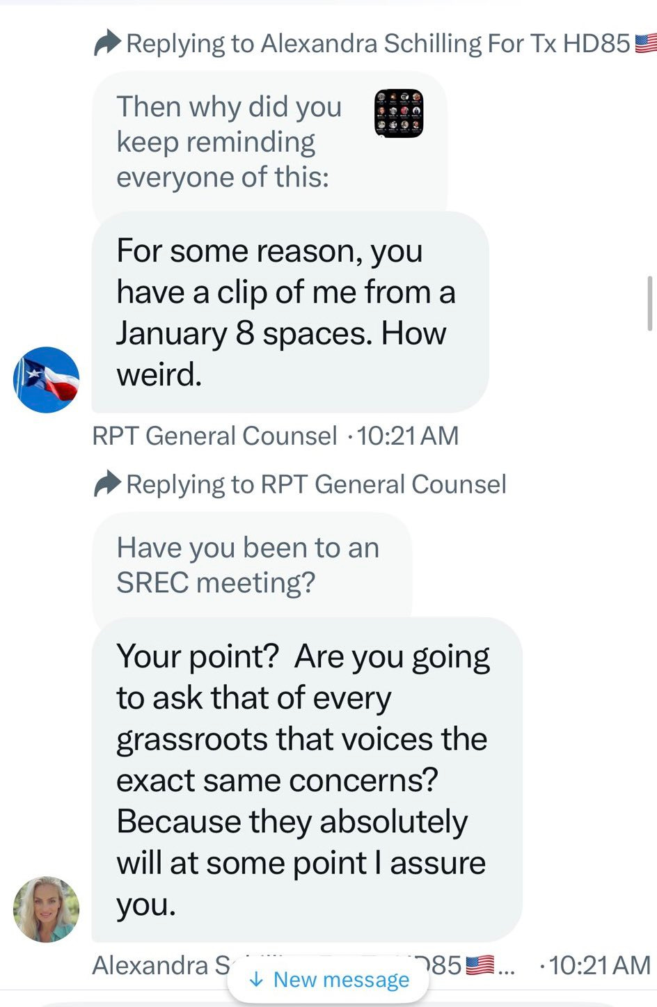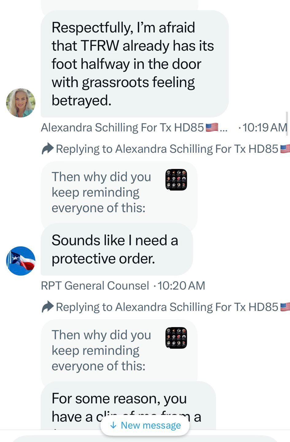 In a group chat, general counsel for the Republican Party of Texas, Rachel Hooper said she found the posting of the clip to be “weird.”