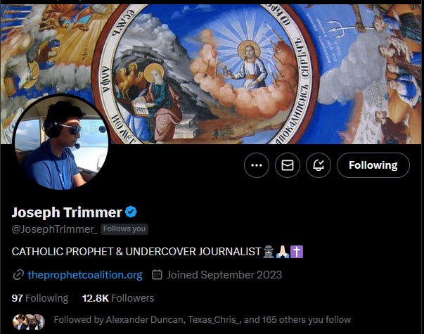 Trimmer has also recently labeled himself as a “Catholic Prophet”