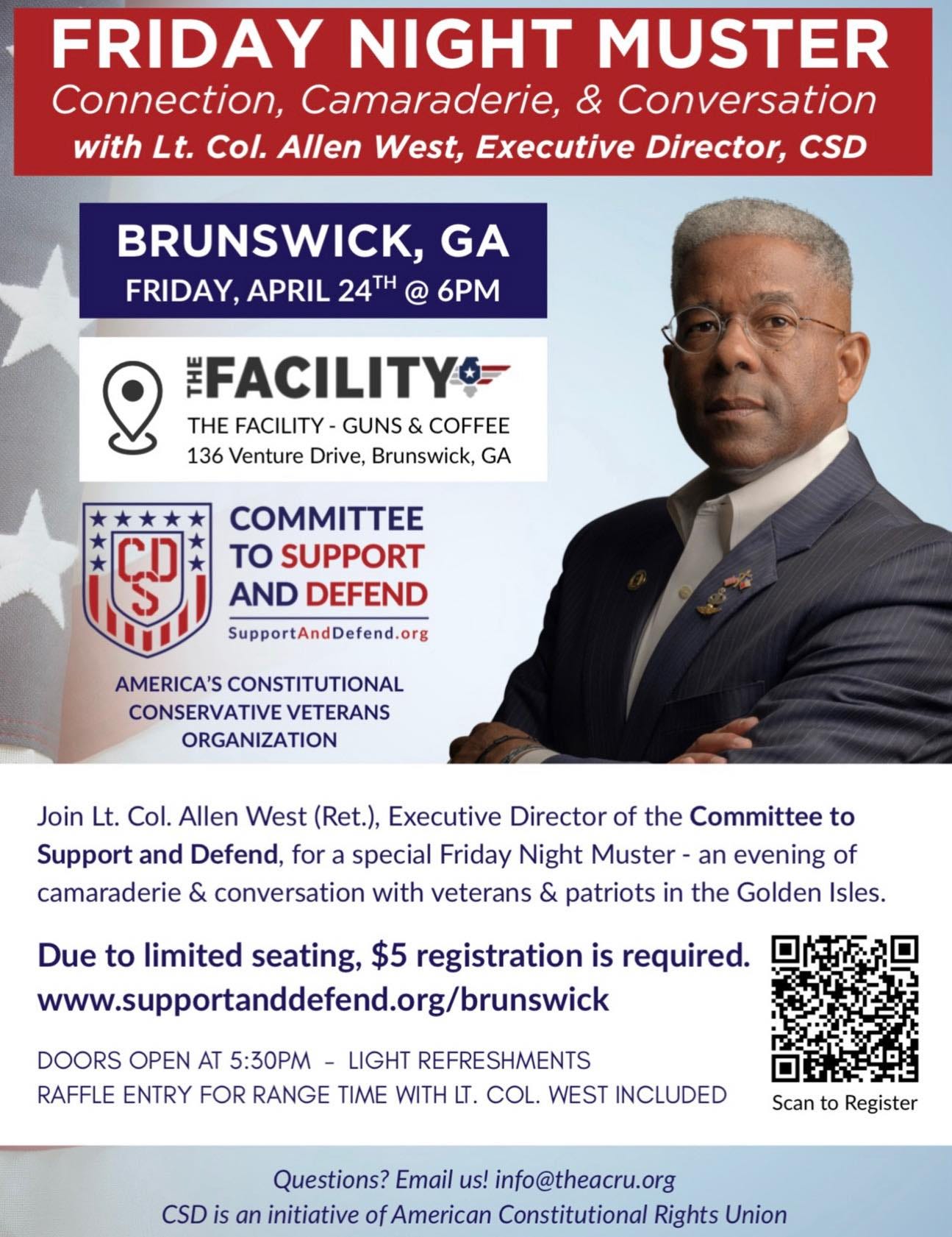 Allen West is set to speak in Georgia on April 24th next week.