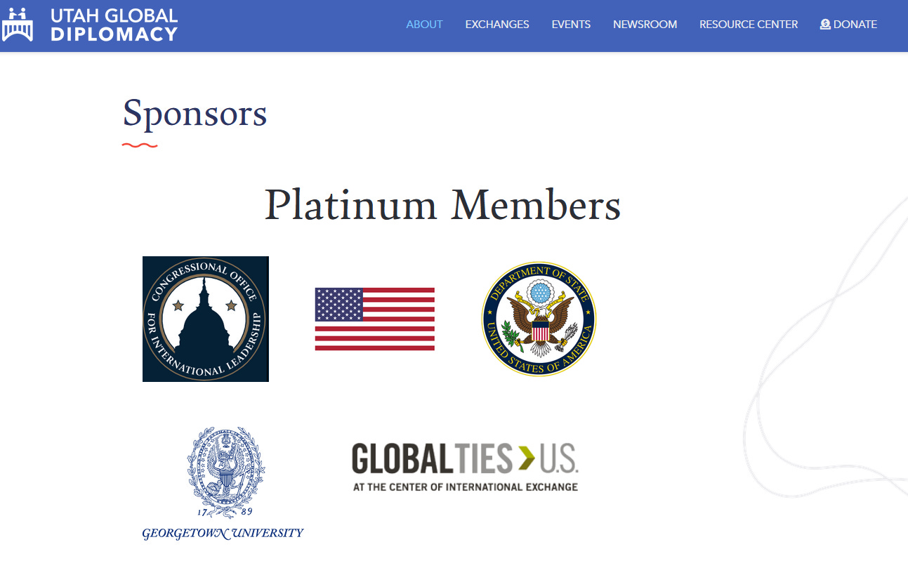 Utah Global Diplomacy’s sponsor page shows several government agencies that backed the organization.