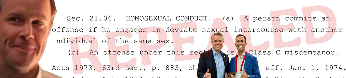 A bill co-authored by Democrats and Republicans Brian Harrison and Dade Phelan would maintain that public acts of “deviate sexual intercourse” are still illegal—for now—but for the first time ever, the most deviate sexual acts you can imagine will now be legal in Texas behind closed doors.