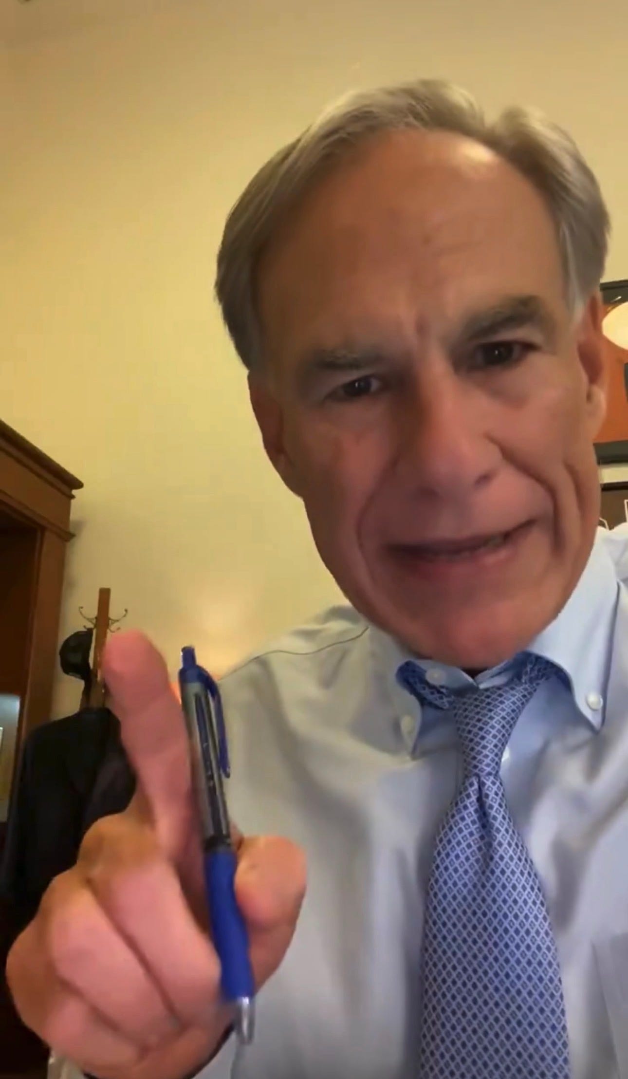 Blue shirt, blue tie, blue pen seems like he’s letting the Texas dems know he’s still on their side.