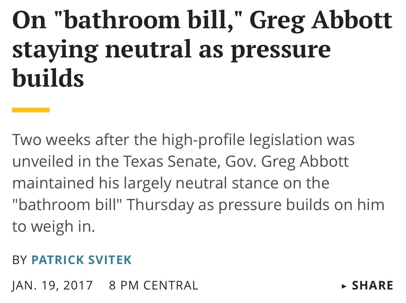 What is definitely not a trick or a hoax is the new bathroom bill Abbott just signed into law. It’s literally fascism for the potty and it’s wonderful.