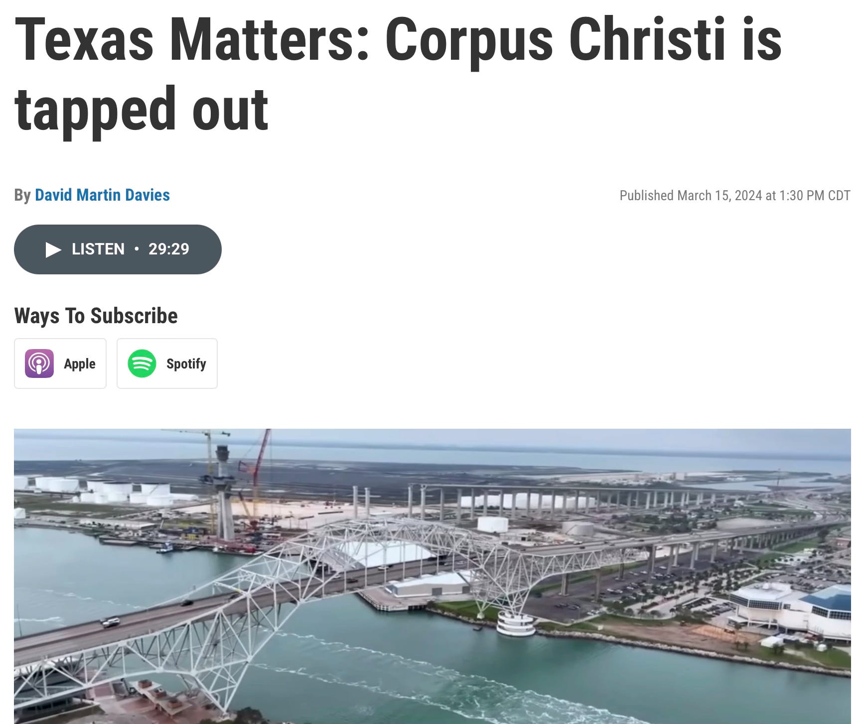 Keep in mind, Corpus Christi now has a water crisis so bad that Abbott has teased a state takeover to fix the problem, essentially citing negligence as the reason for their water crisis. A popular petition has called for the mayor’s removal.