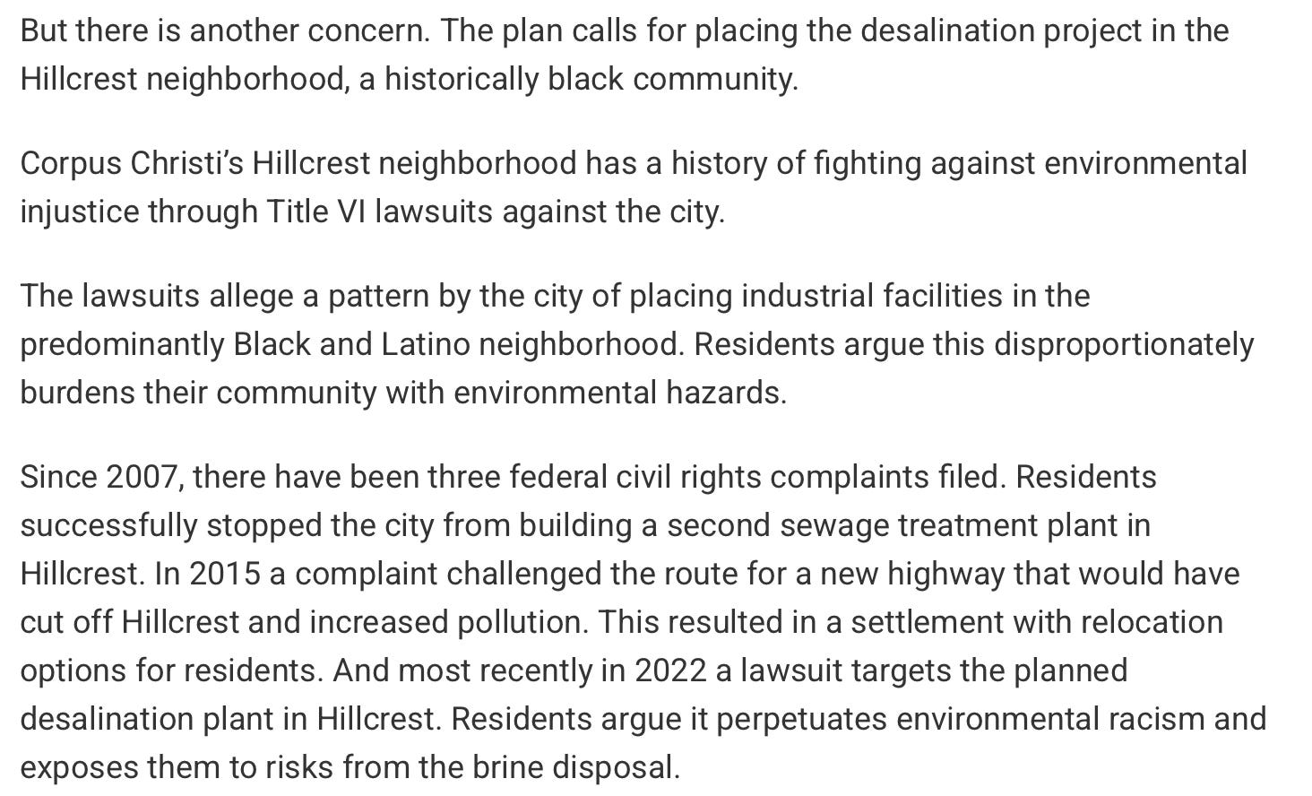 In a nutshell, bureaucracy and DEI Civil Wrongs laws are a reason why Texas can’t have mass-desalinization to fix our water shortages, unlike Israel (90% of Israel’s fresh water is made via desalination.) Other regions around the globe don’t have to worry about water scarcity, despite their climates; why should Texas?