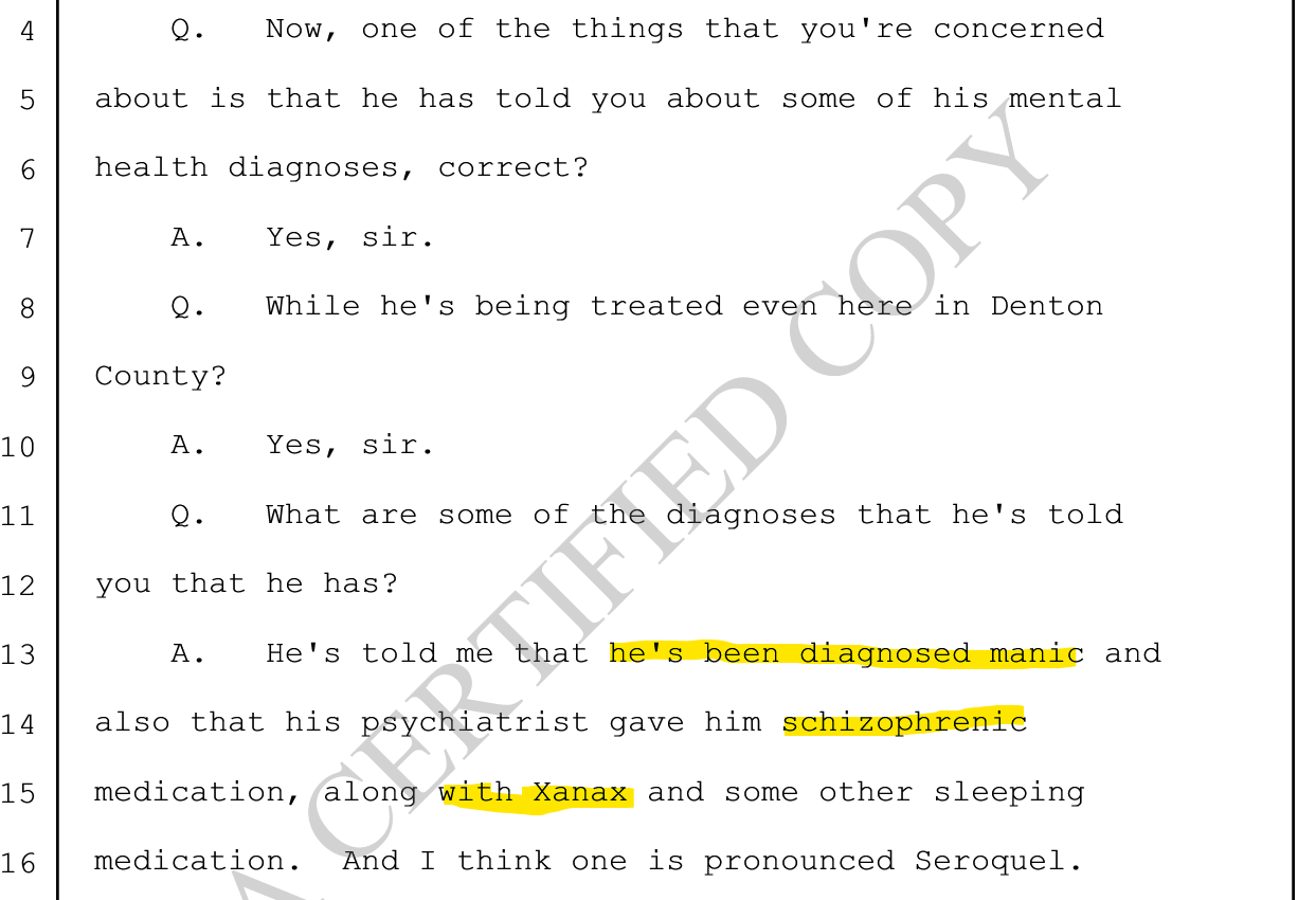 Court exhibits also include photos of his medication which includes quetiapine which is typically prescribed for schizophrenia:
