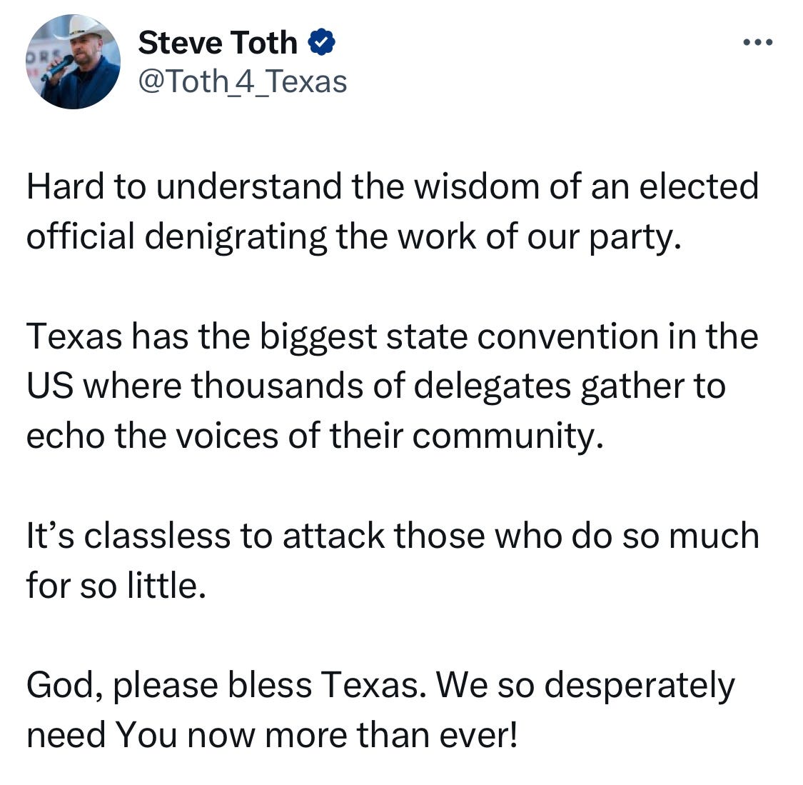 The man who many consider to be the best dressed man in Texas fired a shot at the Republican Party of Texas (RPT) and its voters over Father’s Day Weekend.