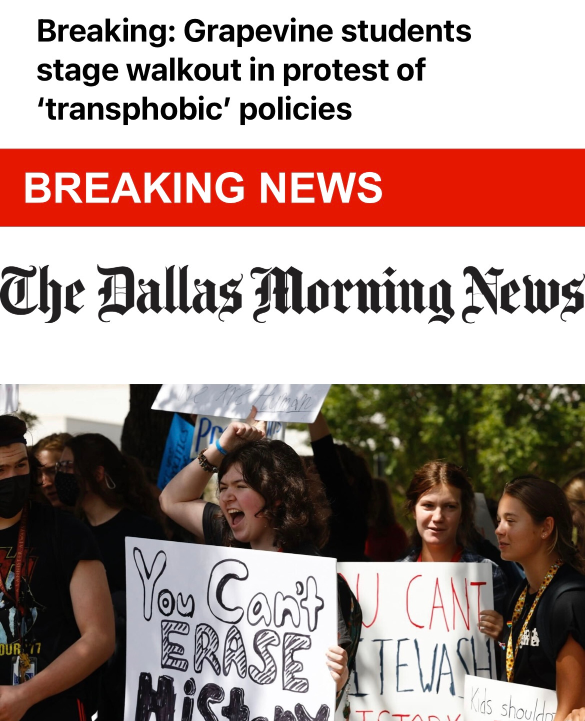 More than 100 Grapevine High School students walked out of class Friday morning in protest of new district policies that limit how teachers talk about race, gender and sexuality, impact which bathrooms transgender students can use and give trustees a greater say over what books are available in libraries.