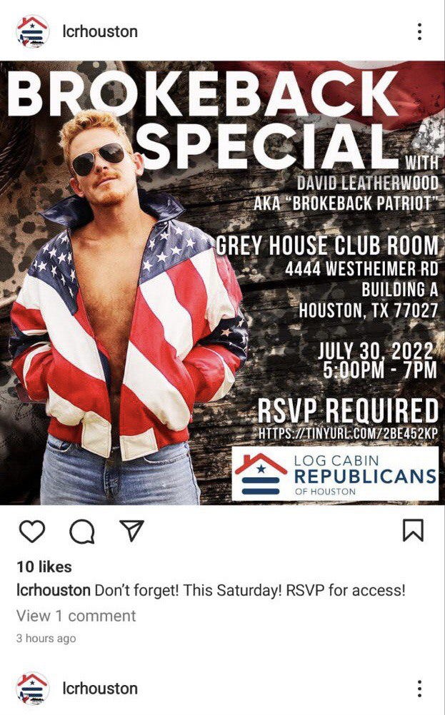 Thanks Log Cabin Republicans, very cool! So glad the Anal Sex Patriot (that’s what the movie title references) is here to tell us about low taxes or something.