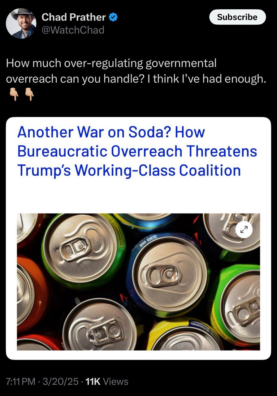 The govt collects all your data all day long from every phone, camera or store you purchase at, builds a profile in you to use against you and they thought they could rally people around soda when they don’t care about the govt spying on them all day.