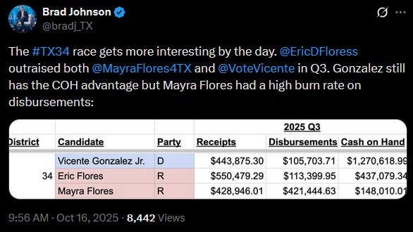 FEC October quarterly reports were released which confirms campaign-as-career candidate Mayra Flores is still paying herself a fat stack of cash with donations to her campaign.