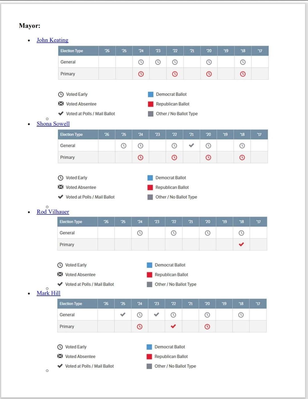 Below are the voting records for the Frisco mayoral candidates, including Vilhauer: