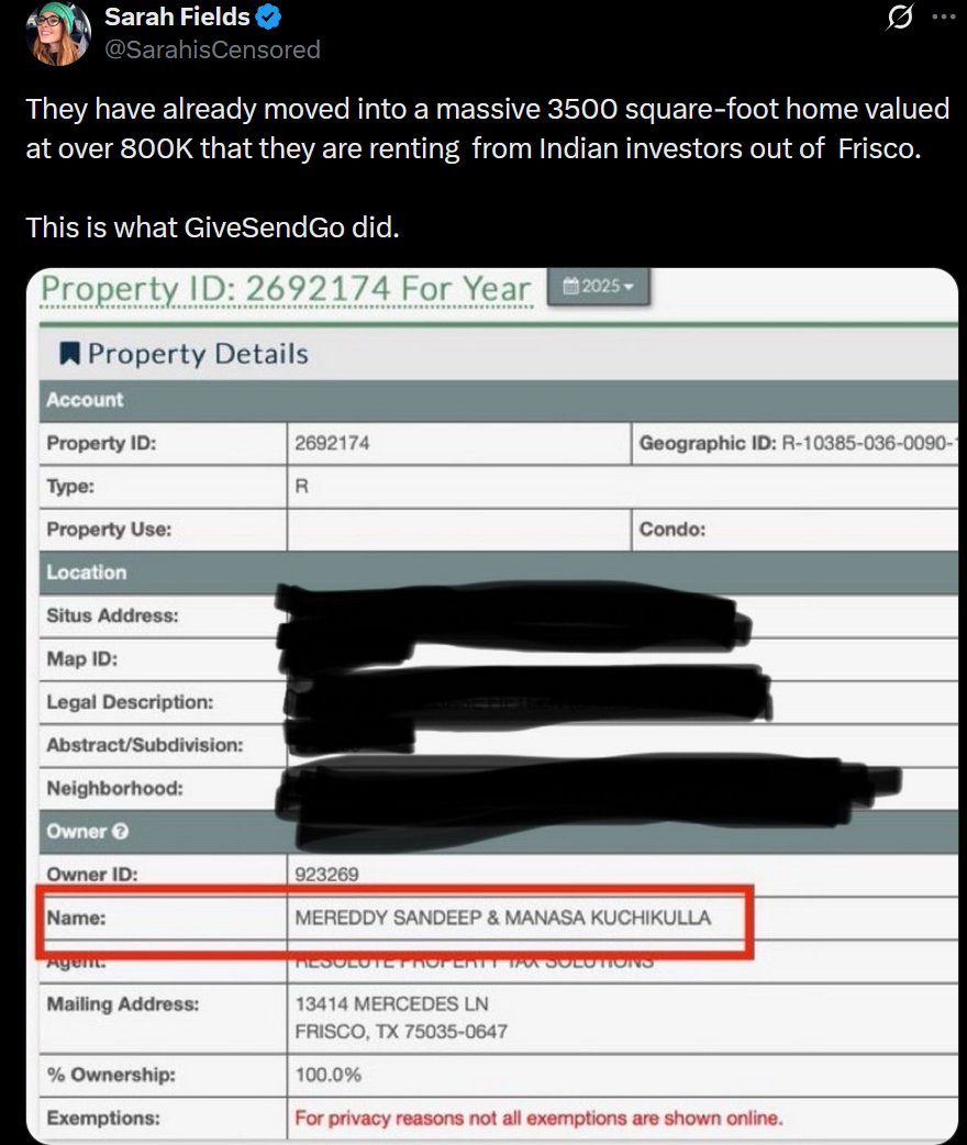 Sarah Fields, the Texas blogger with 9 lives, got another story wrong when she accused GiveSendGo of funding the Frisco Track Meet Killer’s new $800,000 home.