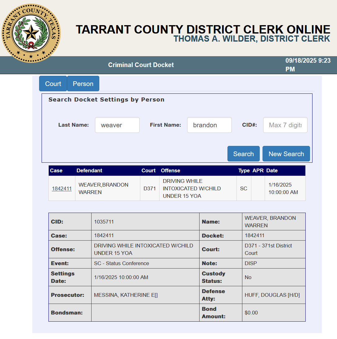 Katherine Allen Weaver’s husband was also arrested for a DWI in July of last year.