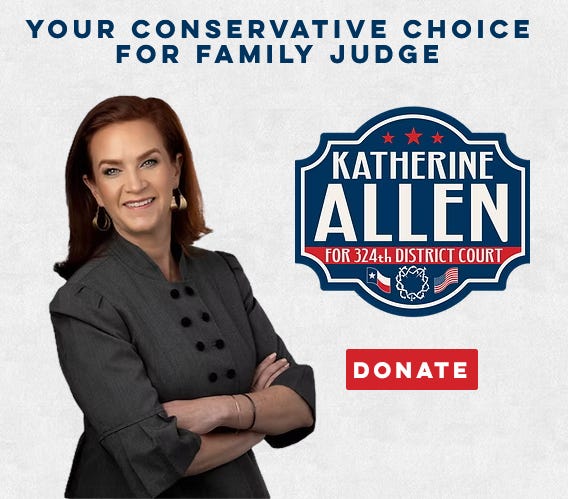 Katherine Allen, a candidate for the 324th family court in Tarrant County, is campaigning as a “conservative” for her run for judge. However, past documentation shows that she may not be as conservative as she portrays herself online.