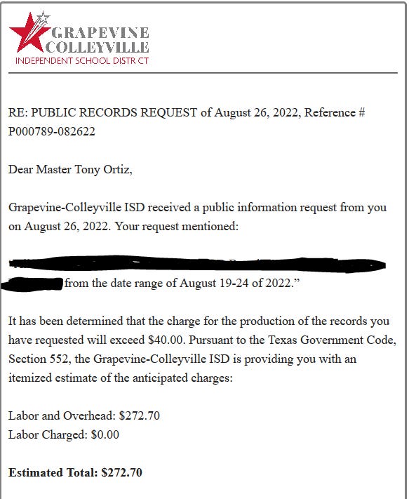 GCISD Wants to Charge Us $272 For 6 Days of Emails in an Open Records Request