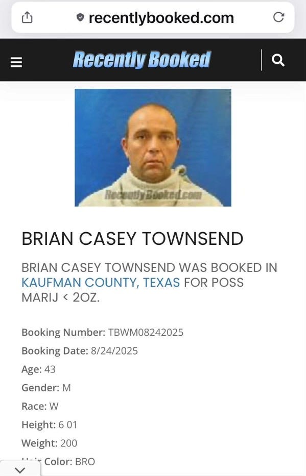 Showing that smoking the reefer isn’t limited to just the libs, Kaufman County Republican Party Treasurer, Brian Casey Townsend, was arrested last month for pot and paraphernalia.