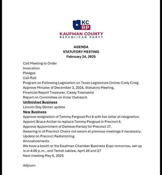 Townsend was listed as the Kaufman County Republican Party Treasurer in a February agenda.