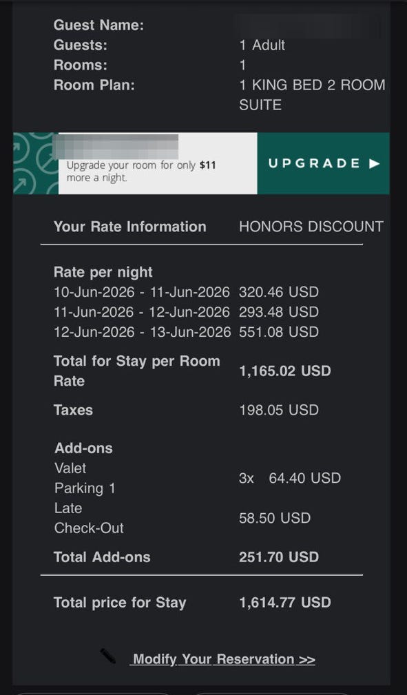 One attendee we spoke to sent us their costs for a hotel room at the Hilton for the weekend totaling $1,614 for a three-night stay: