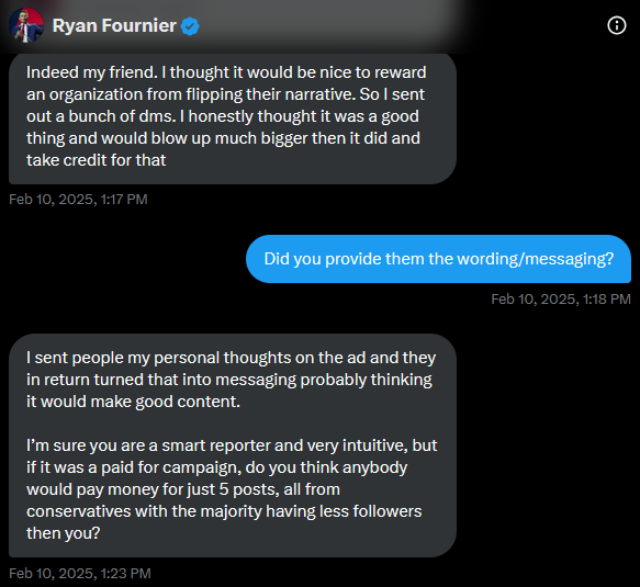 Current Revolt noticed that all of these posts were being collectively reposted by MAGA influencer Ryan Fournier.