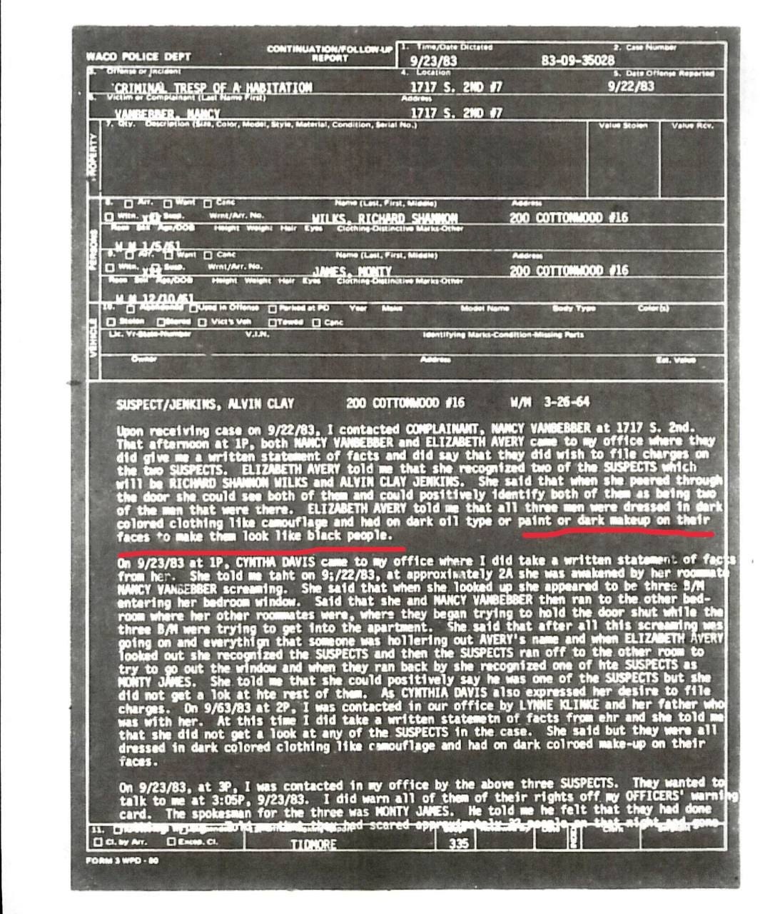 According to a police report obtained by Current Revolt, a young Clay Jenkins allegedly put dark makeup on his face in order to appear to be a black man to “scare” young college girls.