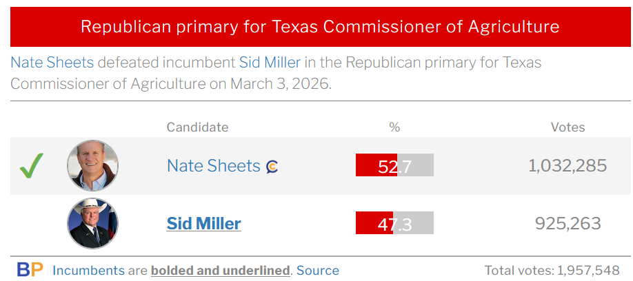 On Tuesday, Nate Sheets was able to defeat longtime Agriculture Commissioner, Sid Miller.