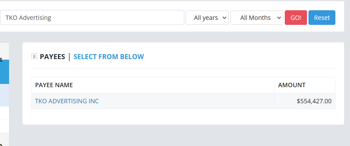 The contract with Pentagram Design and TKO Advertising seemingly cost a total of $772,427.