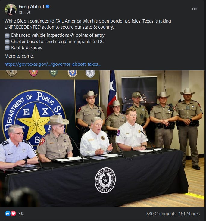 Furthermore, much of what Abbott is promising is likely very hard to enforce, and will result in a lawsuit from the President Brandon administration, putting Texas Attorney General Ken Paxton in a peculiar position of being forced to defend and try and enforce this.