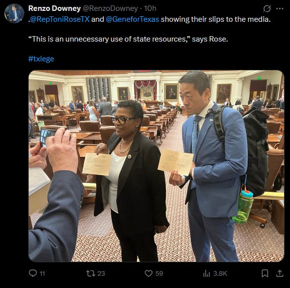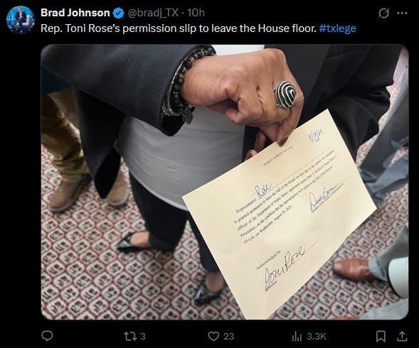 Permission slips were then assigned to House Democrats, and they were asked to sign the slips acknowledging their requirement to return to work. This permission slip allowed them to head home after session today.