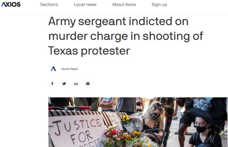 Letting no good deed go unpunished, Austin hero Sgt. Daniel Perry has been indicted by local Neomarxists for defending himself from an Antifa agitator threatening to murder him, more than a year after he did it. Gov. Abbott the Boneless is nowhere to be seen and has shown no interest in pardoning an innocent man, continuing the Governor’s modus operandi of cowardice.