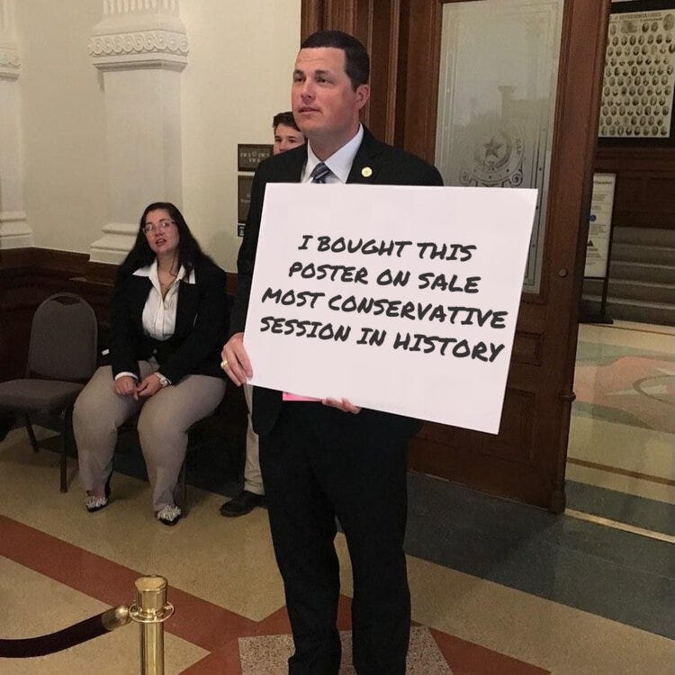 For example, two things that would have prevented the current chain of events — Voting against making Dade Phelan Speaker of the House because he was open about his intention to appoint Democrats to chair committees and kill good bills.