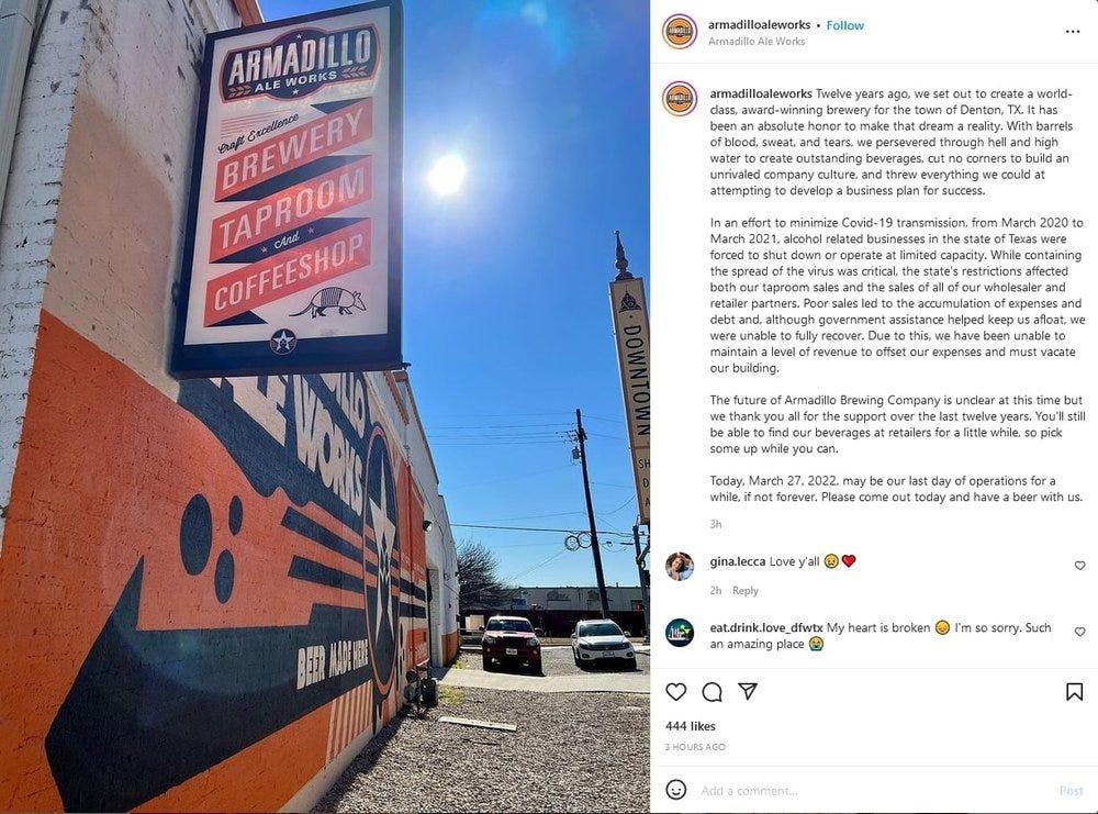 We reached out to Armadillo Ale Works for comment throughout the day. The phone went unanswered.