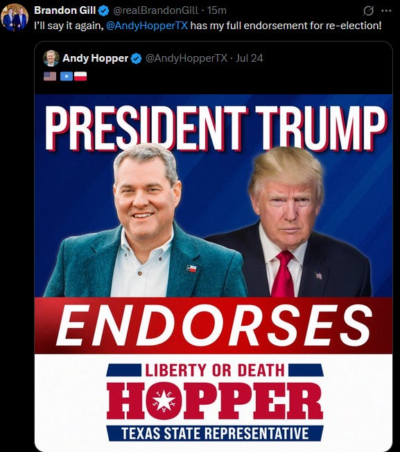 A short time later, those mentioned immediately released statements of their own endorsing incumbent Rep. Andy Hopper for re-election.