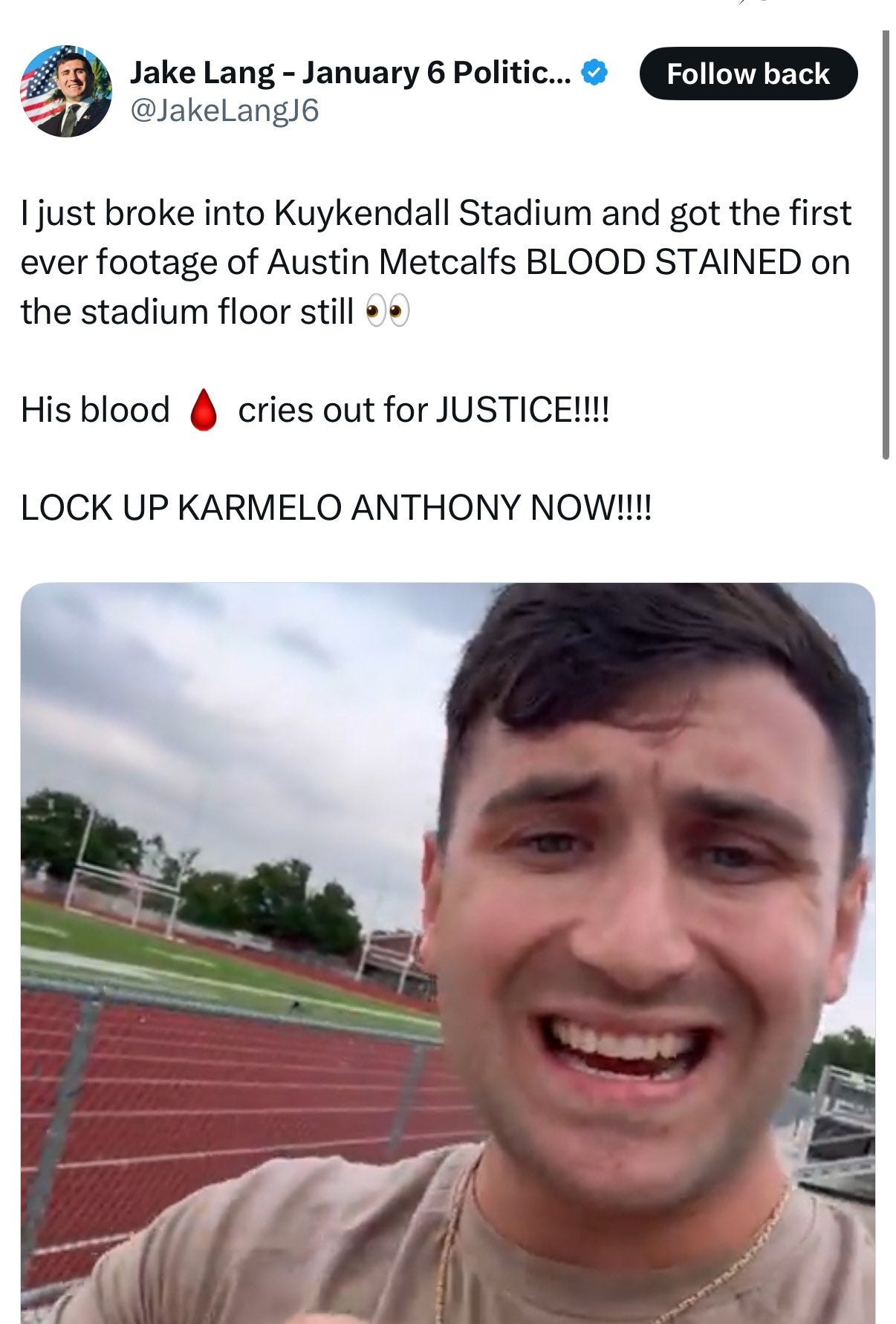 The protest was organized primarily by Jake Lang, a former J6 political prisoner-turned US Senate candidate out of Florida.
