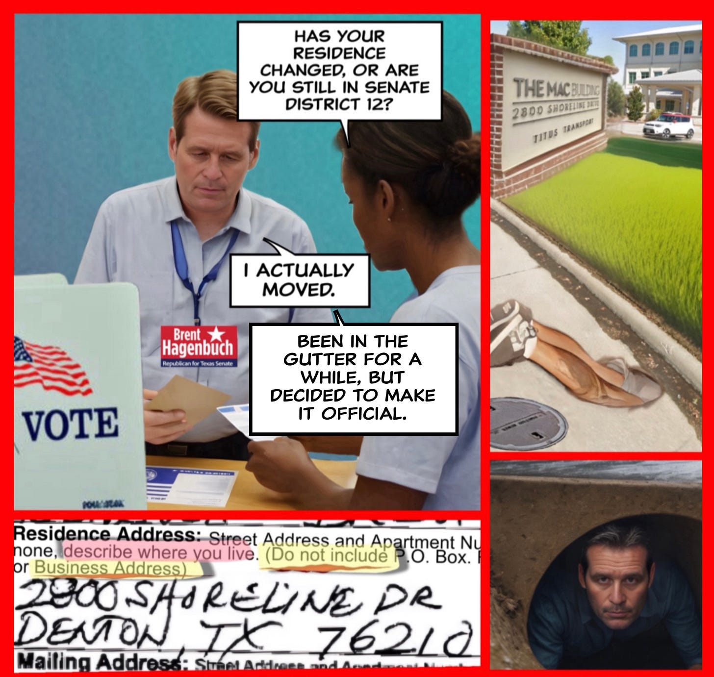 We have followed Senator Brent Hagenbuch’s unprecedented finagling into power since early 2024, when it first came to light that he listed a shared office building in a business park as his residence on official paperwork in an effort to qualify for a Texas Senate district where he did not actually live.