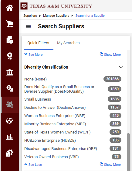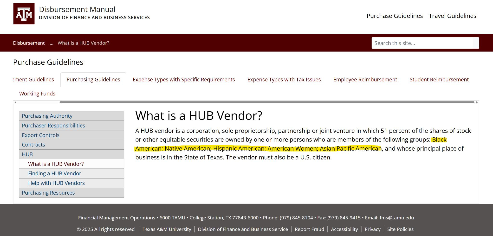 When searching for contractors or vendors, thousands of Texas A&M employees are provided a convenient sorting system to filter for which combination of race and sex they like the most and make sure they spend money with them to meet quotas.