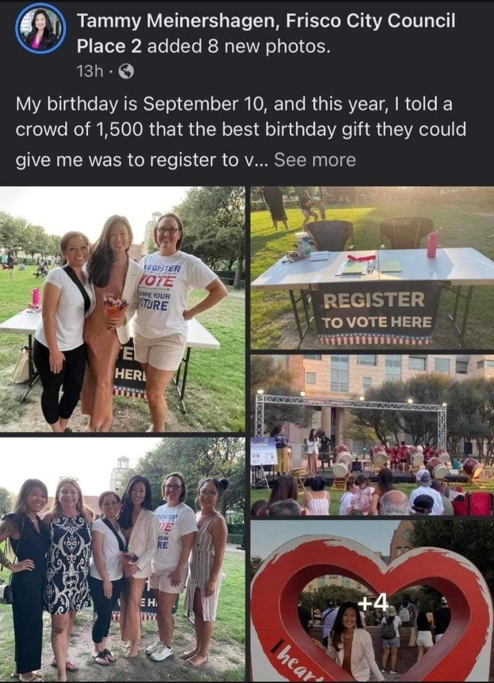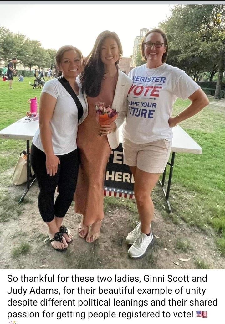 What emboldens such bureaucratic buggery? For starters, it does not help the Denton GOP Chairman donated to a Democrat, only winning because his opponent got screwed off the ballot, and somehow managed to keep his position. Worse yet, the party’s Outreach Chair Judy Adams got caught registering Frisco voters with Neomarxist activist Ginni Scott.