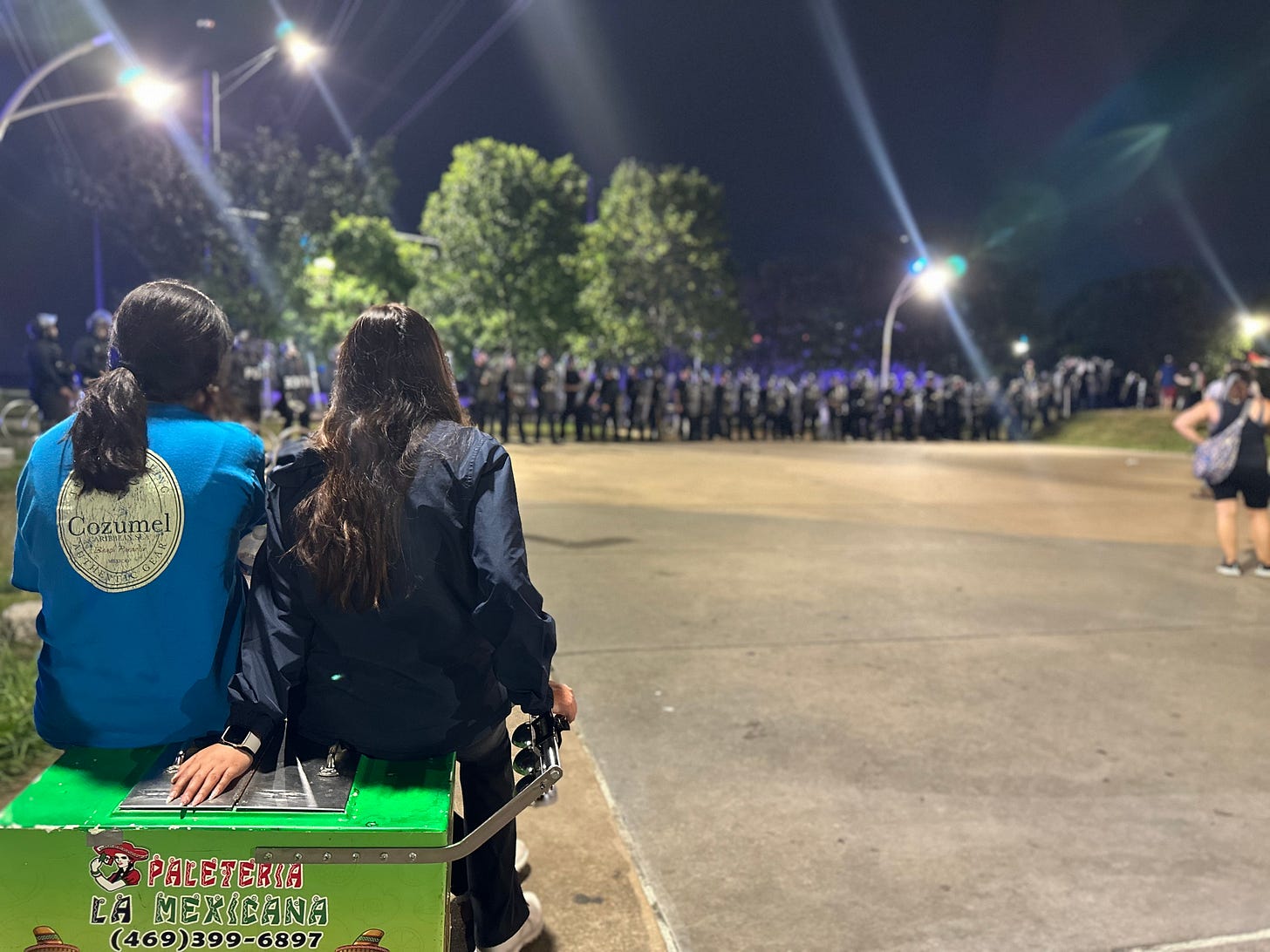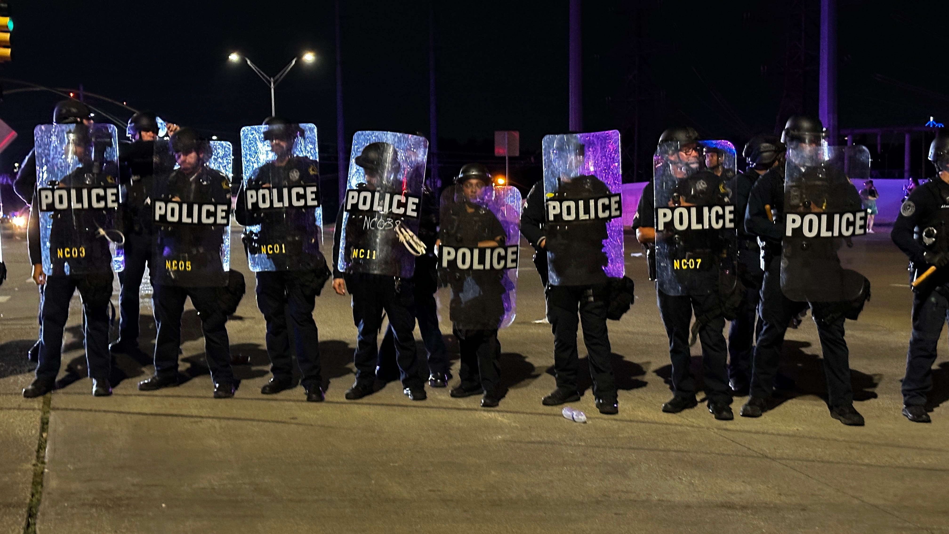 Dallas police eventually declared the protest was an unlawful assembly before slowly pushing protestors back and opening the road.