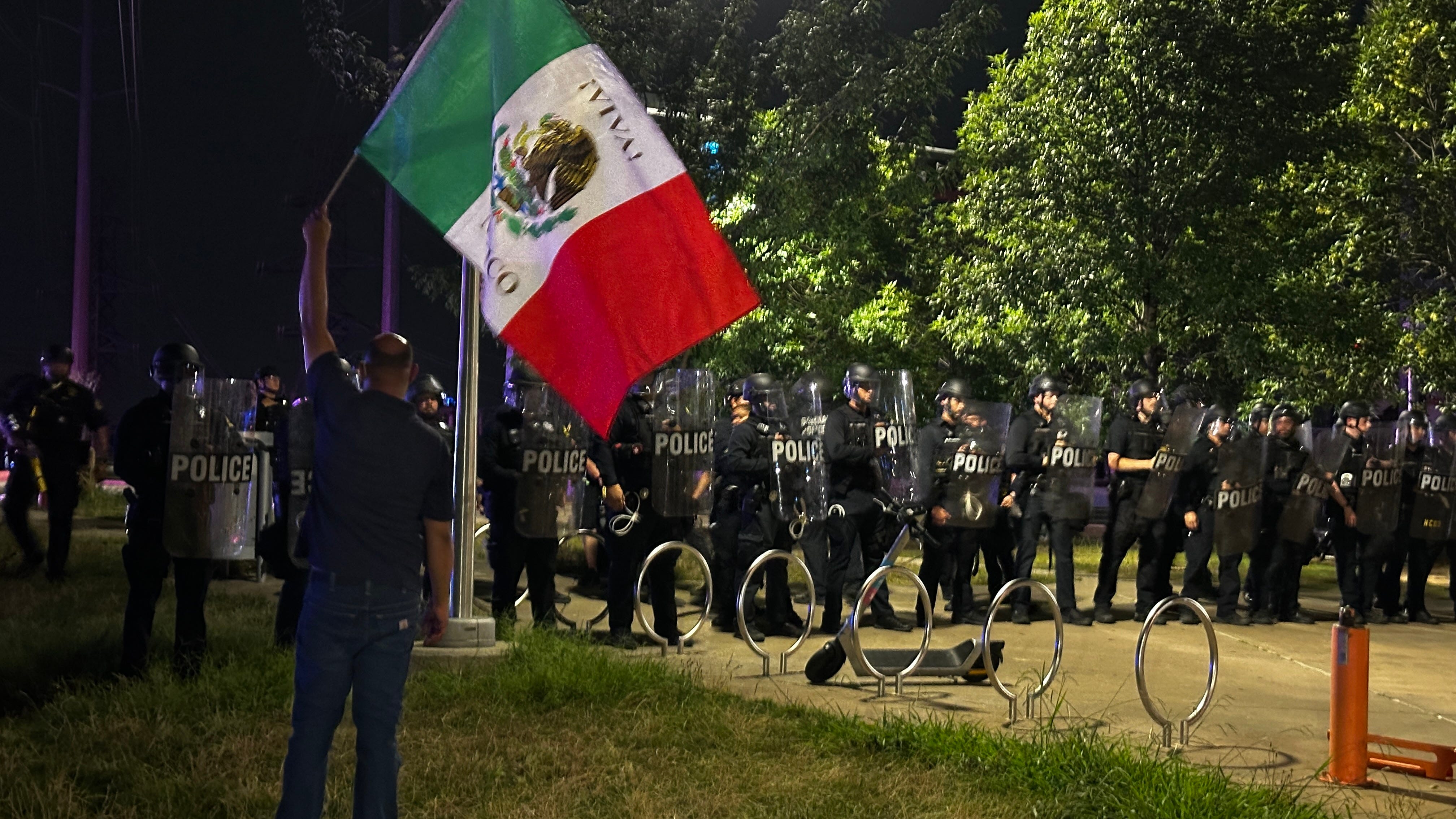 Protestors began shooting fireworks and throwing water bottles at police. Police responded with rubber bullets/paintballs.