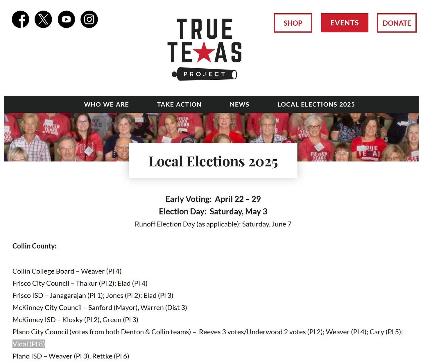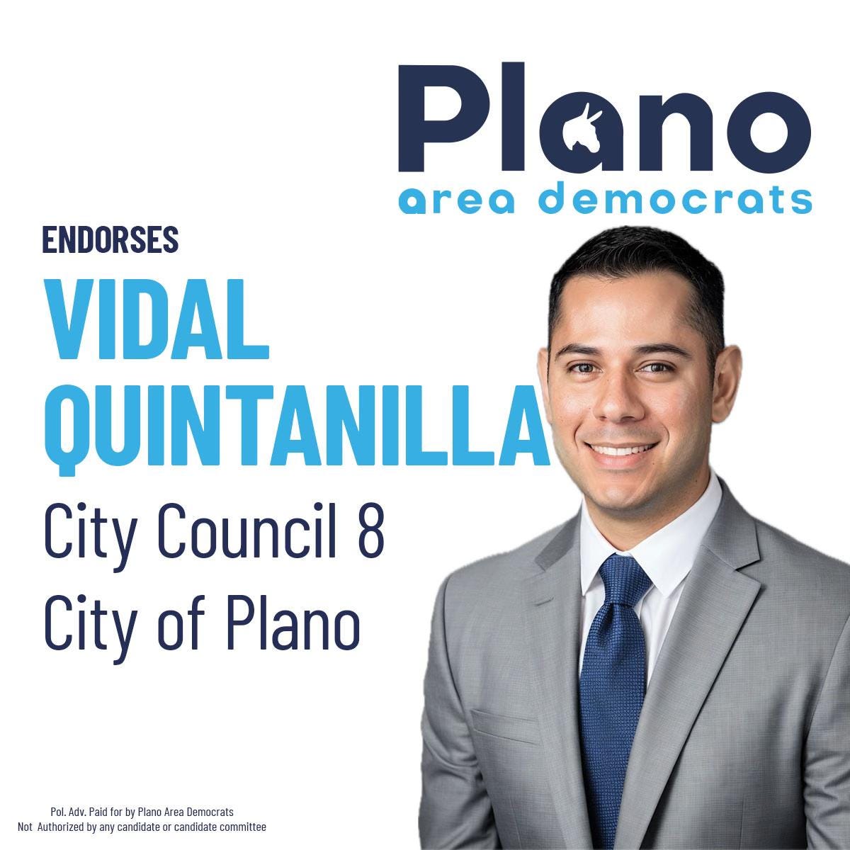 Together both True Texas Project and Plano Area Democrats endorsed Vidal Quintanilla against Republican candidate Hayden Padgett.