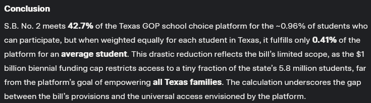 So the new law aligned with the platform by 42.7% for 1% of students, but when you weigh the scoring across all students, what was passed into law only fulfilled 0.41% of what the GOP platform laid out.